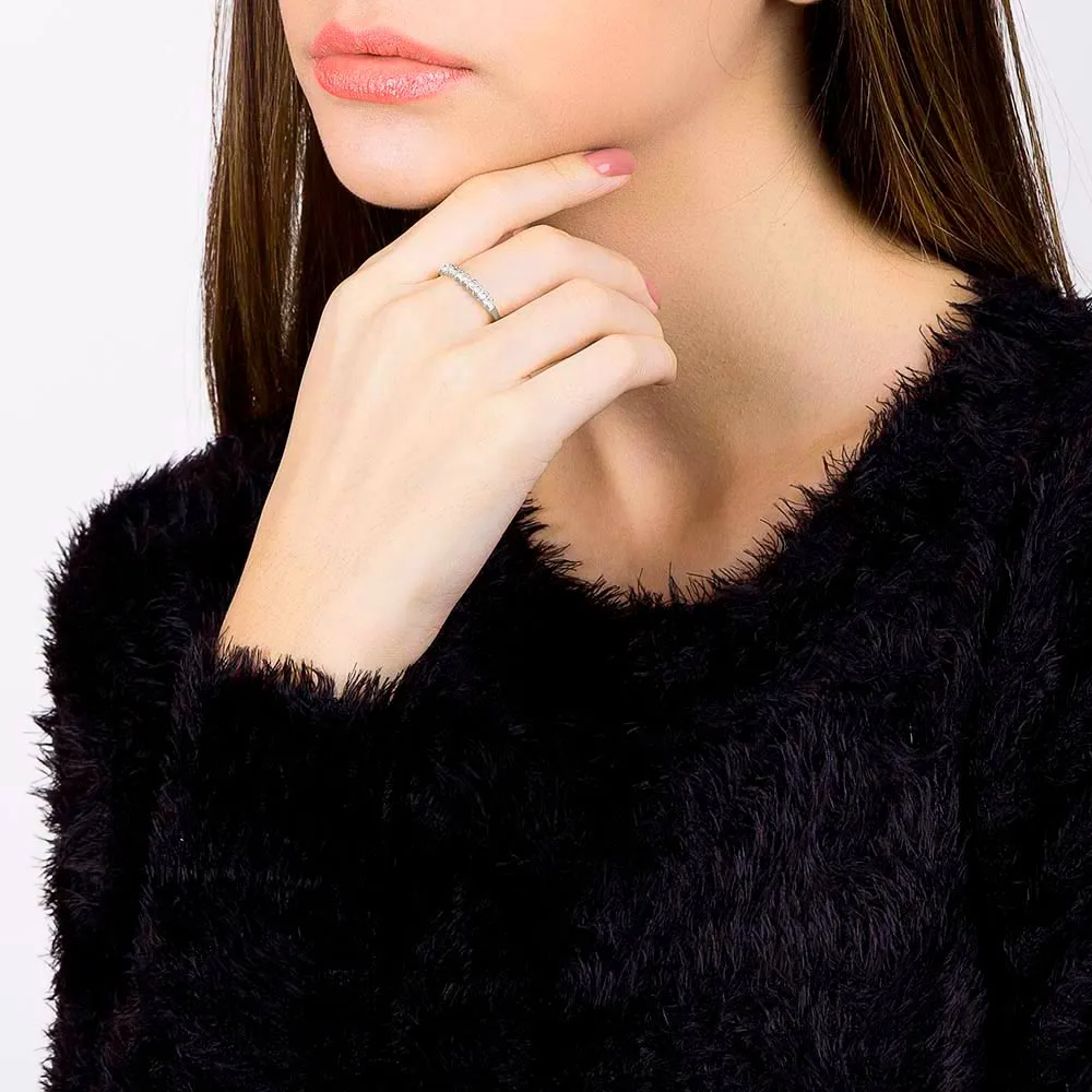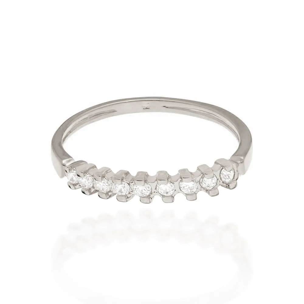 Anel meia aliança com 9 zircônias.