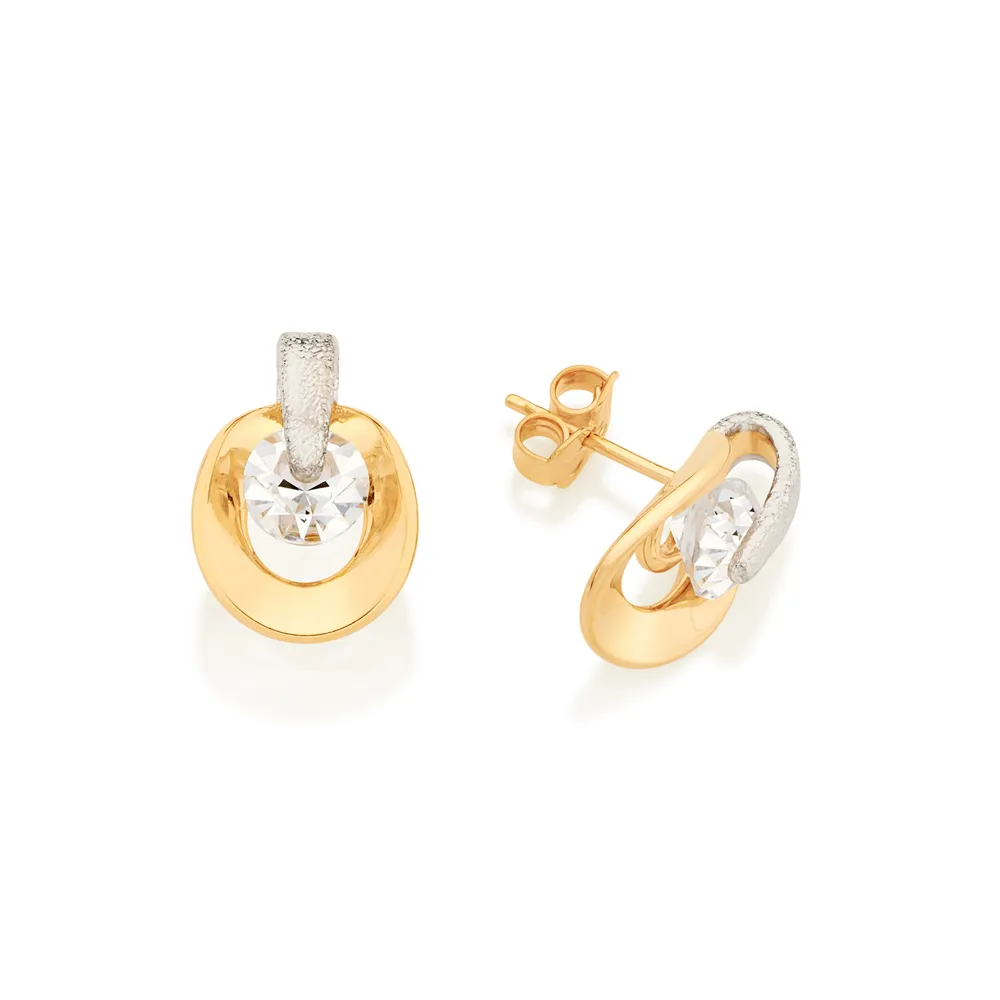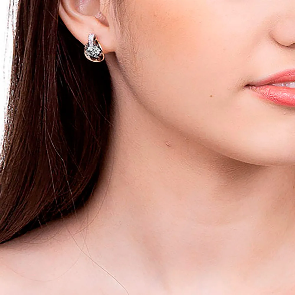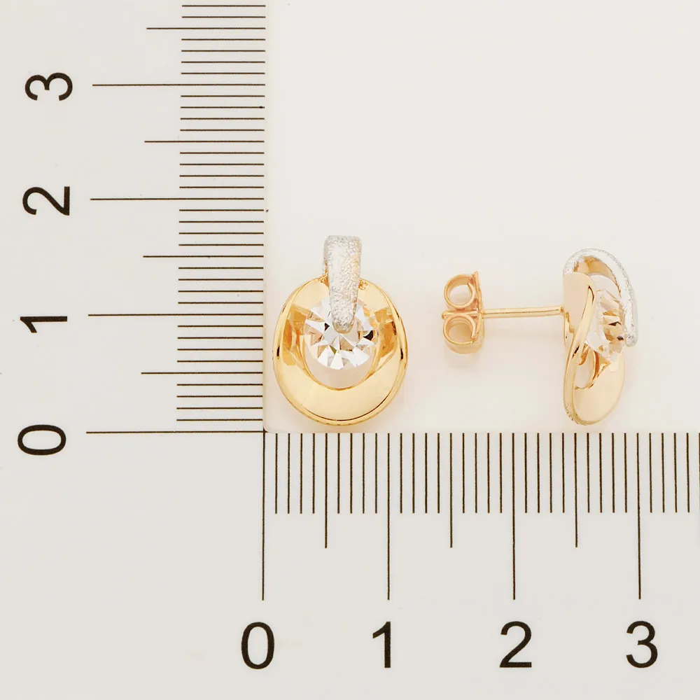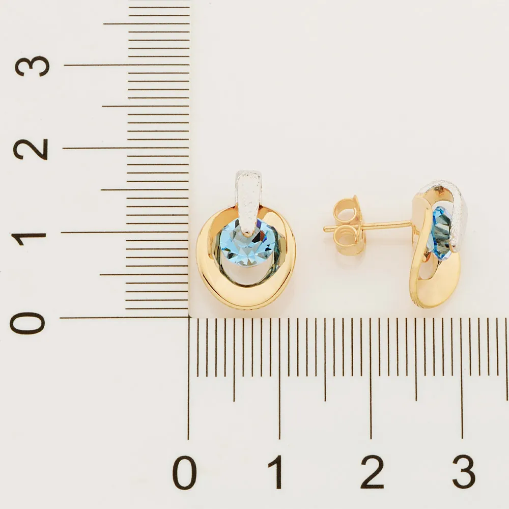 Brinco solitário composto por 2 cristais e detalhe liso ao centro (par).