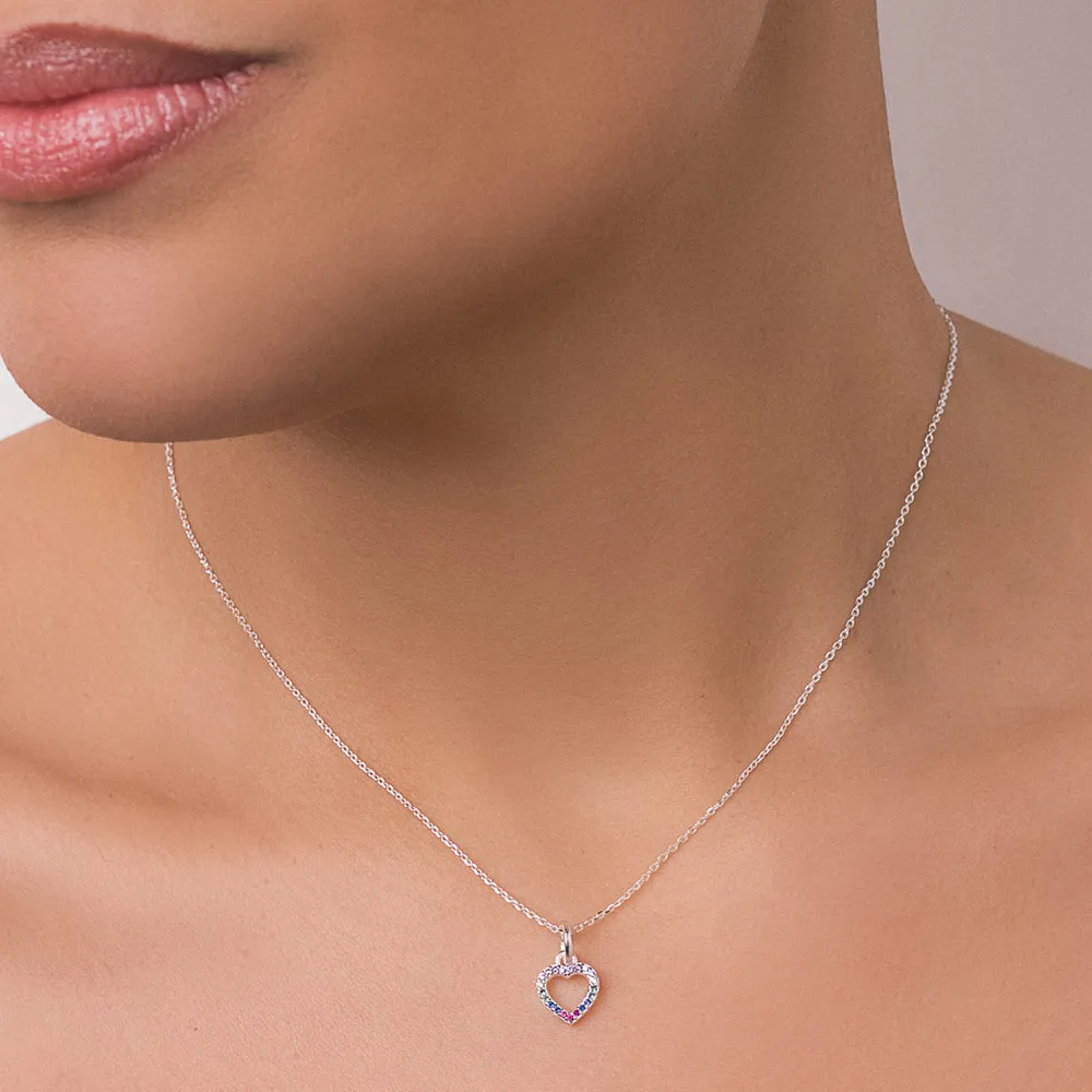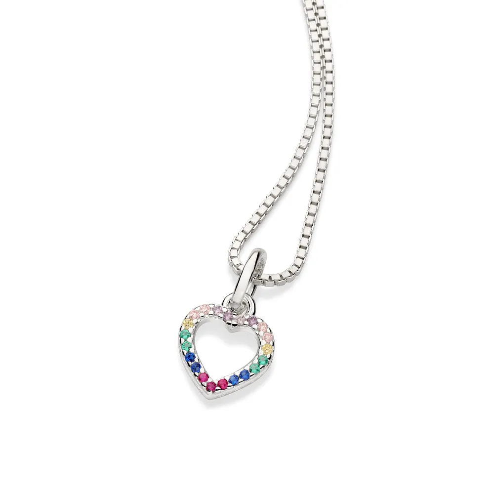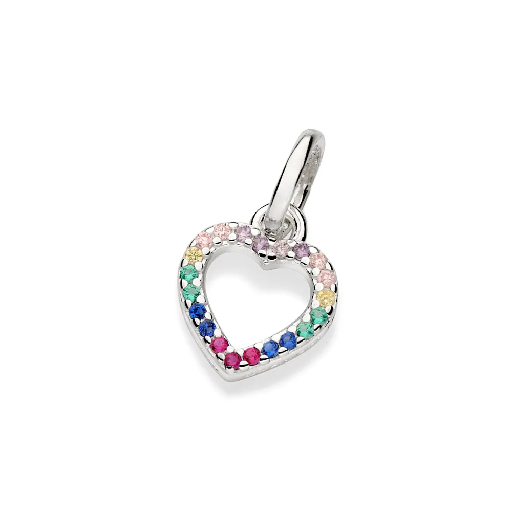 Pingente formato coração cravejado por 21 zircônias de 1,0 mm.